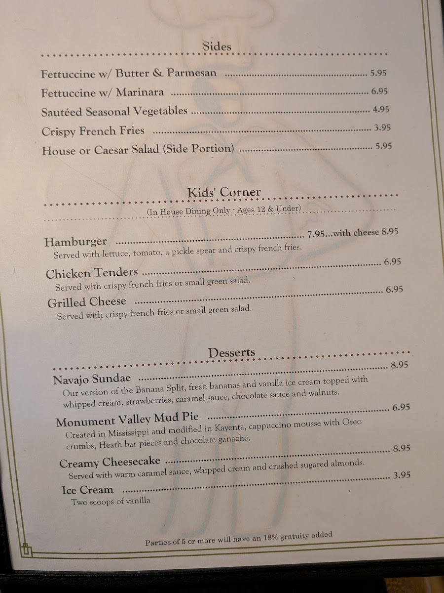 Reuben Heflin Restaurant offers a straightforward menu blending Native American traditions with familiar American and Mexican influences. The selection feels approachable, designed to satisfy whether you’re settling in for a casual lunch, a relaxed dinner, or a comforting snack after a day of exploring nearby Monument Valley.