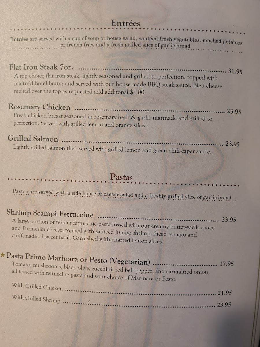 Sweet finishes like a classic Banana Split or a seasonal special dessert give a gentle close to the meal, adding a familiar comfort that fits naturally with the overall menu tone.