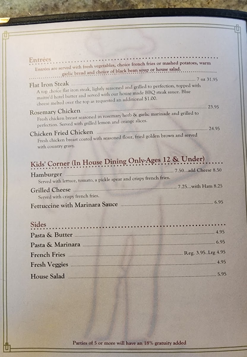 Reuben Heflin Restaurant Menu